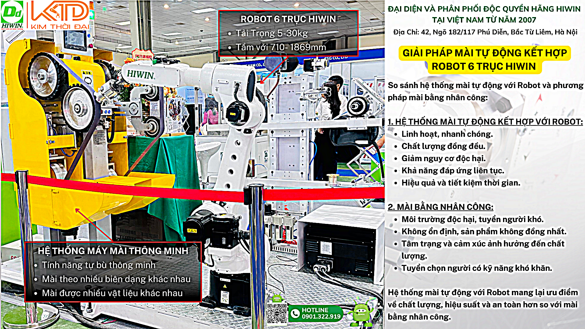+ Cung cấp giải pháp tự động hóa kết hợp robot Hiwin.